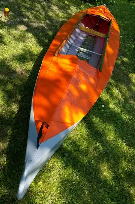 Оболочка для байдарки Салют сшита из ткани ПВХ. Оболочка проклеена по всем стрингерам и кильсону ПВХ профилем шириной 50 мм.Кронштейн для установки руля не предусмотрен.
